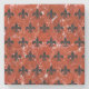Un modelo real usando una flor de lis de mármol negra en un fondo de mármol rojo.