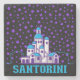 Santorini Memory. en el resumen. Esta imagen representa un ilustracion personalizado de los icónicos edificios encalados de Santorini, Grecia. Las casas están agrupadas con acentos azules que reflejan la arquitectura tradicional de la isla. El fondo está lleno de estrellas moradas que crean un ambiente alegre y divertido. La palabra "SANTORINI" está escrita en negrita y azul en la parte inferior de la imagen, enfatizando aún más el tema. Esta imagen es una representación colorida y alegre del hermoso y popular destino turístico.