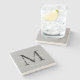 Posavasos De Piedra Moda Monograma Script Nombres Boda Fecha Gris