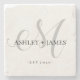 Posavasos De Piedra Moda Plata M Monograma Nombre de guión Boda Fecha