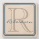 Un diseño sencillo pero elegante, con un cuadrado monograma azul redondeado y espacio para un nombre inicial y apellido. Si el apellido es más corto o más largo que el ejemplo, utilice personalizar para ajustar el tamaño de fuente. Diseño original de Night Owl's Menagerie, 2015.