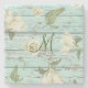 Posavasos De Piedra Monograma de madera envejecida verde con magnolias