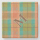 Un trenzado retro a mano en cálido verde azulado, verde y naranja con un monograma de personalizable. Impresa en piedra duradera con respaldo de corcho, esta montaña de montaña personalizada añade encanto patrimonial y protección práctica a su mesa. Un regalo para las vacaciones, los bodas o los domingos.