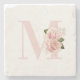 Posavasos De Piedra Monograma floral de brillo rosa femenino