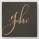 Posavasos De Piedra Monograma moderno Elegante Guión Dorado Negro