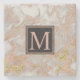 Posavasos De Piedra Monograma moderno Faux Rosa Gold Marble Swirl