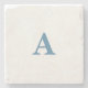 Posavasos De Piedra Monograma Nombre inicial Dusty azul blanco simple