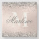 Relieve metalizado metálico elegante Rubor Pink Faux Purpurina Plata Monograma Gris y Blanco con un nombre de guión de caligrafía de personalizable y una plantilla de monograma negrita.