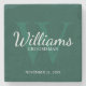 Añada un toque personal a su boda con una tostadora de piedra personalizada. Esta montaña rusa presenta el nombre personalizado del groomsman en un estilo de fuente clásico de escritura blanco con detalles bodas en estilo de letra serif clásico blanco y monograma en estilo de fuente serif clásico de color verde esmeralda claro como fondo, sobre fondo verde esmeralda. También perfecto para el mejor hombre, padre de la novia, portador de anillo y más.