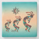 Proteja su mesa con esta "única de una especie" montaña del suroeste de Kokopelli! Tres Kokopelli del suroeste tocan flauta y baila bajo el sol sobre fondo turquesa y atardecer. Diseño De Arte Original Del Artista Kerry Miller.