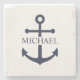 Posavasos De Piedra Nautical Navy Blue Anchor Nombre Personalizado