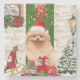 Navidades perinos de Pomerania sentados afuera de casa decorada con flores de Navidad, el árbol de Navidad es una idea de regalo perfecta para los amantes del perro.