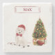 Esta raza de perro, un Westie está sentado al lado de un árbol de Navidad decorado. Esperando las vacaciones, este perro se ve humorístico con un sombrero de santa y corbata de arco rojo. Perfecto regalo para enviar a estos Navidades ya sea de o para un amante de los perros - ¡o sólo porque es gracioso!