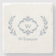 Posavasos De Piedra Nombre de Familia Monograma Corona de Laurel Azul