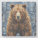 Vibrantes obras de arte que representan a un oso con un rico abrigo de piel en textura, ambientado en un fondo de mosaico de tonos azules y grises. El oso se erige imponente y reavivado, captando la atención con sus características realistas.