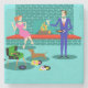 Esta Pareja Retro con Pascua de Piedra Perra parece una escena de una comedia romántica. El estilo de los años 60, con un diseño de arte minimalista, cuenta con una atractiva pareja que disfruta de una velada romántica en casa. La sofisticada sala cuenta con una chimenea de agua y ladrillo verde azulado con una cornisa de color rojo intenso. Una hermosa mujer pelirroja con un vestido brillante y rosa está encaramada en la cornisa. Está disfrutando de un martini con una aceituna flotante, un fuego ruidoso, buena música y la compañía un hombre alto, oscuro y guapo. El hombre lleva puesto un traje azul y corbata roja. Su vaso martini se cría para brindar por su encantador compañero. Por otro lado, está sosteniendo un álbum de discos de vinilo. A sus pies, vemos a un adachshund más adorable usando un collar rojo. El juguetón perro encerador está caminando en dirección a un jugador de récords verde con patas naranjas y de hélice. En el suelo hay un colorido grupo de discos de vinilo divertidos, eclécticos. Salud! Aquí está la velada perfecta en casa.