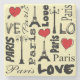 Diseño de texto de París para El día de San Valentín con formas de corazón rojo, Torre Eiffel y lámparas de calle con fondo amarillo