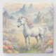 Una montaña rusa de piedra que muestra una imagen de ensueño de un unicornio blanco con una forma de arco iris parado en un campo de flores. En el fondo se encuentran las majestuosas montañas. El regalo perfecto para dar a los amantes de los unicornios mágicos y místicos. Contiene contenido generativo.