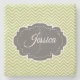 Proteja su mesa y sus encimeras con una montaña rusa personalizada. El diseño de la montaña rusa cuenta con un fondo de chevron verde y una etiqueta gris ornamentada para personalizar con tu nombre y monograma. También hay artículos adicionales disponibles con este diseño. Póngase en contacto conmigo directamente para obtener ayuda sobre la personalización.