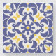 Patrón de azulejos mediterráneos tradicionales dibujado a mano. Pintura de mosaico geométrico azul mosaico y amarillo con motivos florales. El diseño decorativo perfecto, un regalo ideal para cualquier ocasión. Inspirada en azulejos portugueses, la influencia italiana, española y mediterránea.