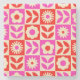 Un patrón retro impecable con flores estilizadas y hojas en tonos rosa y rojo brillante, evocando una estética vintage y alegre.
