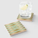 Posavasos De Piedra Patrón Geométrico Monogramado Oro y Bandas Verdes