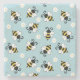 Patrón incomparable con adorables abejas voladoras y flores de margarita blanca decoración en fondo azul claro