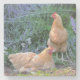 Esta montaña rusa de piedra cuenta con una hermosa escena con 2 gallinas orpington buff tomando el sol de la tarde frente al sabio ruso morado.