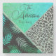 Un mosaico de diseño de estampado de leopardo verde azulado sumergido junto con un vibrante patrón purpurinoso de color verde oscuro verde azulado donde se puede personalizar junto con helechos tropicales creando vibraciones de glamur a la moda.