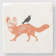El cuervo negro audaz se sienta en la parte posterior de un zorro naranja brillante. Diseño único para amantes de los animales. Un giro en el zorro y la fábula del cuervo. ¡Esta vez son amigos animales!