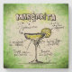 Parte de una divertida serie de diseños de guía de barman con recetas de bebida. Esta es para una Margarita hecha con cubos de hielo machacados, tres segundos, tequila, jugo de cal, una llanta salada y adornada con un segmento de cal.