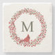 Posavasos De Piedra Red Berries Wreath and Red Cardinal Monogram