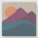 Un hermoso ilustracion abstracto de un paisaje montañoso y puesta de sol utilizando tonos de otoño de otoño de color derivados de la naturaleza. Los tonos de color son burdeos, naranjas, azules profundos y beige. Un diseño rústico ideal para la decoración de otoño e invierno, decoración de Acción de Gracias y regalos.