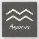Posavasos De Piedra Rótulo Aquarius Zodiac sobre fondo negro