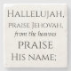 Una serie de ocho tiras que contienen la letra del primer verso del himno de Salmo 148: Aleluya, alabado Jehová, de los cielos, alaba Su nombre...