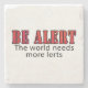 Estar alerta. El mundo necesita más expertos. No te tomes muy en serio porque nuestro mundo está en una grave escasez de desiertos. Así que nos atrevemos a serlo. Nuestro diseño de texto en rojo y blanco sobre negro hace una declaración audaz. ¿Cuál es tu lema?