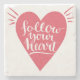 Siga su corazón - frase moderna blanca de la caligrafía manuscrita en fondo rosado del corazón. con textura del grunge. Vector el diseño de tarjeta con la tipografía áspera el | Bigstock® - todos los derechos reservados.