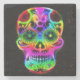 Colorida imagen de un divertido cráneo con colores de neón sobre fondo negro