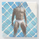 SlipperyJoe hombre muscular seis paquetes abs malla ropa interior blanca malla azul mosaicos en forma de diamante moderno fondo de superficie digital abstracción artística orgullo gay regalos LGBTQIA carne y píxeles colisionan irreal fusión de sueños únicos diseño audaz
