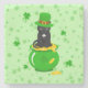 Posavasos De Piedra St. Patrick's Day Shamrock Pot of Gold Black Cat