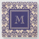 Posavasos De Piedra Su Monograma, Patrón de Damasco Azul de la Marina