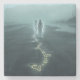 A trail of golden footprints leads through the sand, marking a path between silence and memory.