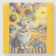 Una escena caprichosa cuenta con un gato sentado en una valla, rodeado de girasoles vibrantes y libélulas coloridas. El fondo incluye colinas onduladas, un sol brillante y una disposición divertida de motivos giratorios. Photoshop CS de arte digital