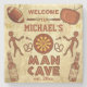 Crea tu propia y humorística montaña de piedra personalizado "cueva humana" usando esta plantilla sencilla. La montaña, hecha para parecerse a la pared de una cueva, tiene unos dibujos primitivos de hombres tirando dardos, una dardos, una televisión, un fútbol, dos bates de béisbol, dos bolas de béisbol, dos pretzels y un par de botellas de cerveza retro. La montaña rusa se puede personalizar fácilmente con tu nombre y el año en que tu bar o "cueva masculina" se estableció. "Bienvenida" y "to" también son cambiables si quieres - pero las palabras "Cueva del hombre" son parte del diseño. Toda la montaña está en tonos marrones, amarillos y un poco rojos.