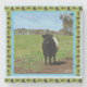 La foto es una vaca gay con correa y rodeada de imágenes de vacas galloway
