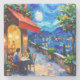 A beautiful European looking village on Valentine's Day, with a couple sitting in front of a cafe under a Starry Night looking sky in a similar style to Van Gogh.
