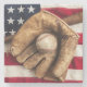 Béisbol vintage, guante y murciélago en una bandera norteamericana vintage