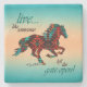 ¡Esta es una montaña rusa Inspiradora de piedra de caballos del suroeste de la región única de "One of a Kind"! Cuenta con un Caballo Galloping del Suroeste en Turquesa, Naranja y negro sobre fondo turquesa y Naranja de atardecer y la Inspiradora cita...¡Viva como alguien que dejó la puerta abierta! Diseño De Arte Original Del Artista Kerry Miller.