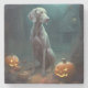 Posavasos De Piedra Weimaraner de Halloween con calabazas aterradoras