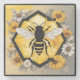 Modern yellow and black Bee on Honeycombe background surrounded by flowers stone coaster.